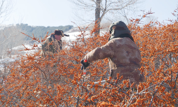 サジーベリーの収穫は冬の貴重な収入源