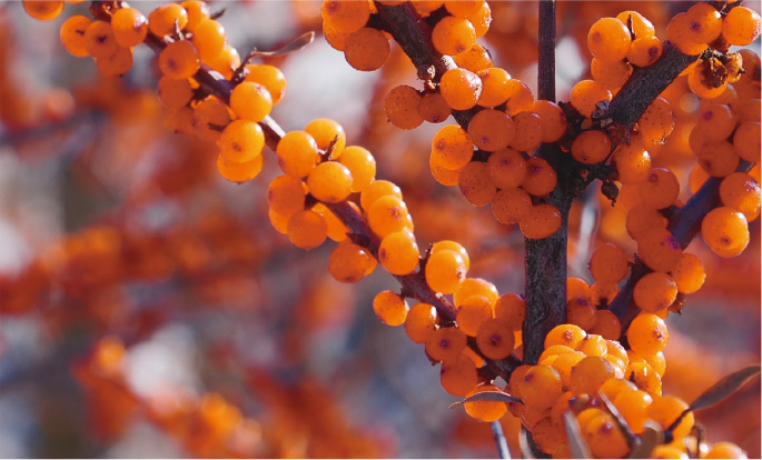 サジーベリーの実は、「栄養の宝庫」と呼ばれるほど栄養素が豊富です。その実の栄養をピューレ製法を用いて余すことなくサジージュースに詰め込んで皆様の健康をサポートします。