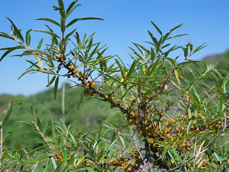 春から秋にかけて蓄えた栄養でパンパンに膨らんだサジー。その実は驚くほど繊細で、皮も薄いのが特徴です。効率を求めれば機械という選択肢もありますが、私たちは「手作業」にこだわります。