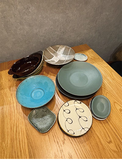 全国の陶磁器が集まるイベントなどで少しずつ収集。濃い色は食事の色を際立たせてくれます。