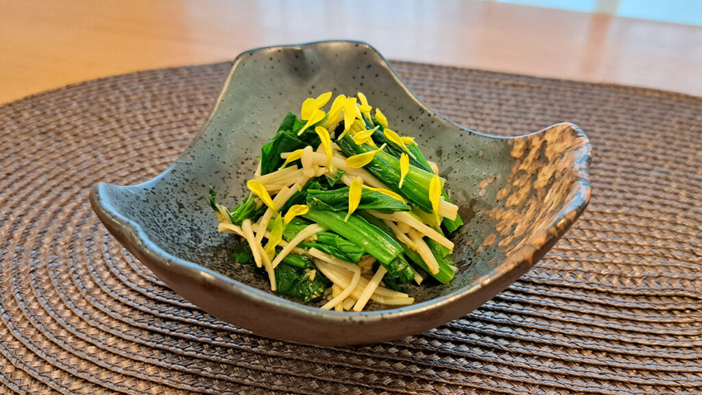 • 1ほうれん草とえのきをしんなりするまで茹でる。