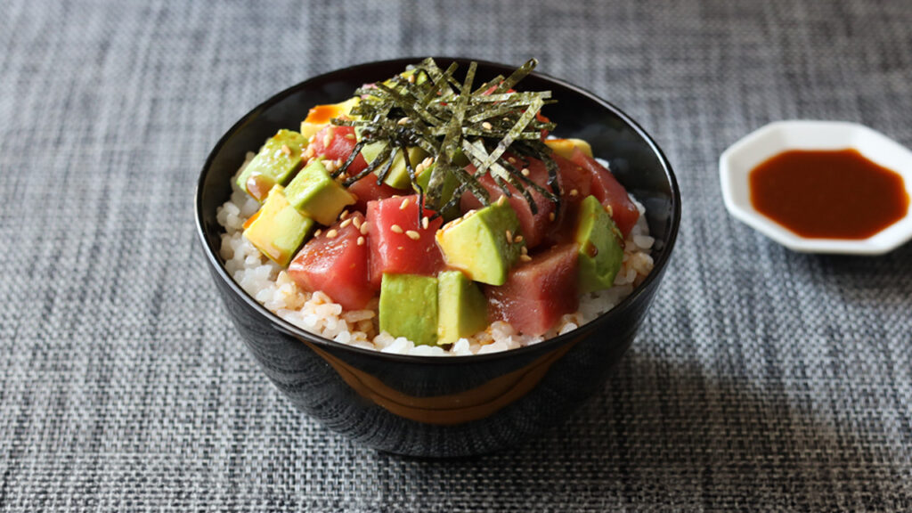 - アボカドは表面を触って柔らかめのものが食べごろです。まぐろはキッチンペーパーでドリップをふきとり、臭みを抑えましょう。