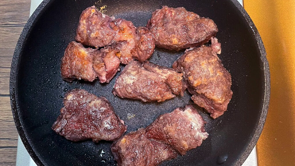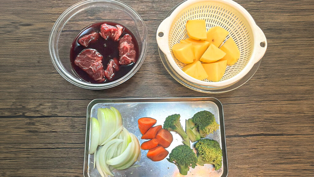 - 牛肩、バラ肉などでもおいしく作れます。最初に赤ワインに付け込んでおくことで、柔らかく仕上がります。