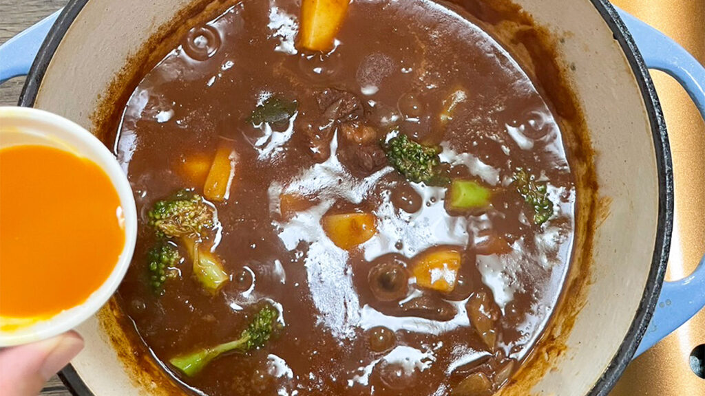 サジージュースを仕上げにいれると酸味で味が引き締まり、ビーフシチューの濃厚な味わいを引き立ててくれます。