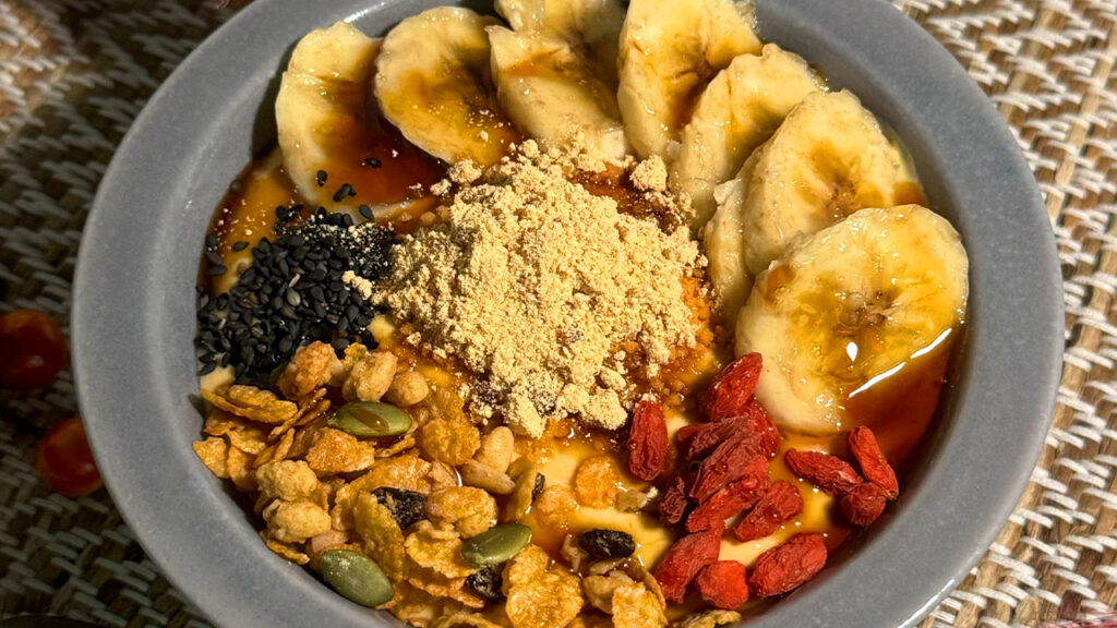きな粉の香ばしさと黒みつのコクが、サジーの酸味に意外にもマッチ😆