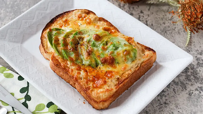 カリッとしたトーストとの食感と、アボカドとチーズのやわらか食感を同時に楽しめます♪